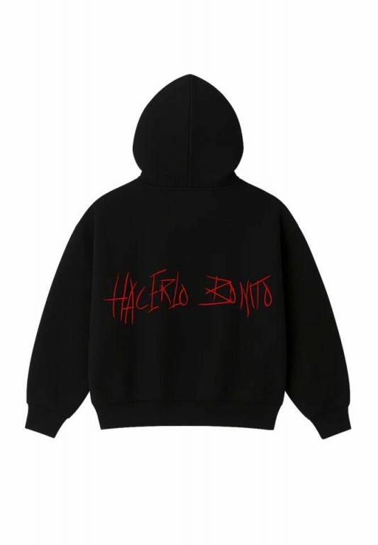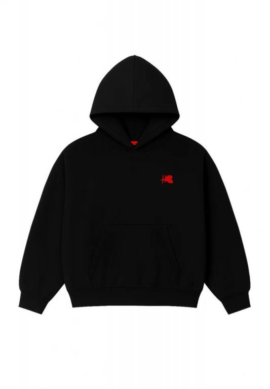 EDICION LIMITADASudadera unisex con corte exclusivo HB. Silueta oversize con hombros caídos y largo ligeramente cropped. Diseño estructurado con volumen definido, pensado para ofrecer confort y presencia sin sacrificar movilidad.Esta sudadera prescinde de cordones en la capucha, manteniendo una silueta limpia y sofisticada que refuerza su estética minimalista.Confeccionada en algodón 100% de alto gramaje (aprox. 560 g/m²). Cuello redondo ancho. Puños y cintura con rib elástico.Disponible en negro.LIMITED EDITIONUnisex sweatshirt with HB’s exclusive cut. Oversized silhouette with dropped shoulders and a slightly cropped length. Structured design with defined volume, created to offer comfort and presence without compromising mobility.This hoodie features a clean, cordless hood design, enhancing its refined silhouette and minimalist aesthetic.Made from 100% high-weight cotton (approx. 560 g/m²). Wide crew neck. Ribbed cuffs and hem.Available in black.