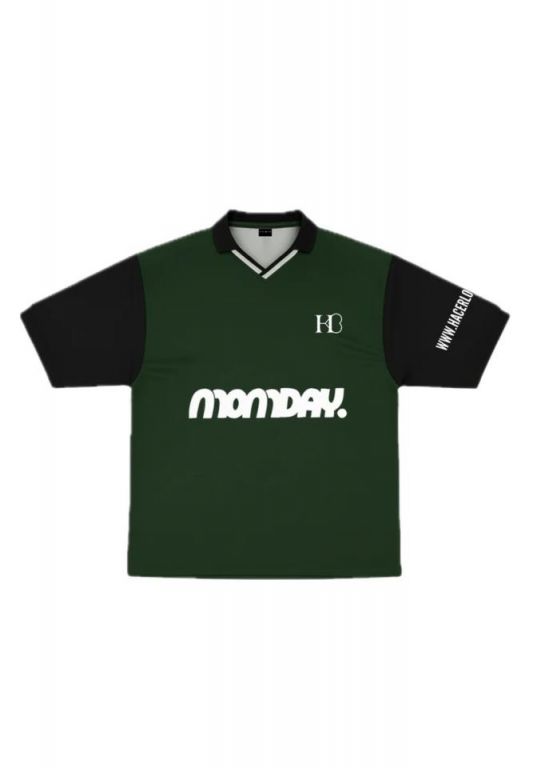 Camiseta unisex con corte exclusivo HB. Silueta oversize inspirada en las camisetas de fútbol vintage, con hombros caídos y caída amplia. Largo ligeramente cropped para aportar un equilibrio entre estética clásica y estilo contemporáneo.Confeccionada en poliéster 100% de alta calidad, con tejido técnico de textura fina y tacto suave. Material resistente, ligero y pensado para mantener su estructura con el uso. Cuello estilo fútbol con acabado reforzado, que aporta presencia y un look premium. Mangas amplias, que realzan la silueta relajada característica de HB. Unisex tee with HB’s exclusive cut. Oversized silhouette inspired by classic football jerseys, featuring dropped shoulders and a wide, relaxed drape. Slightly cropped length for a balance between vintage aesthetics and contemporary style.Crafted from 100% high-quality polyester, with a fine-textured technical fabric and a soft touch. Lightweight, durable material designed to hold its structure over time. Football-style collar with reinforced construction for a premium, elevated look. Wide sleeves that enhance HB’s signature relaxed silhouette.